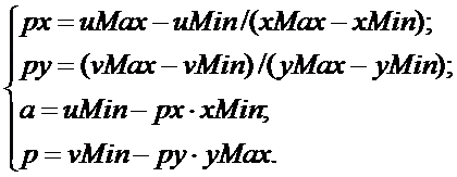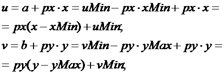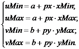 (uMin,vMax), а точка (хMах, уМах) переходит в точку