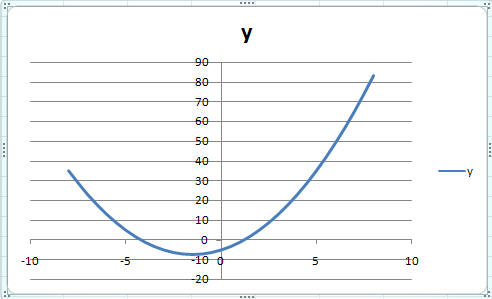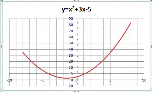 Пример 5. Построить график функции y=x2+3x-5 на промежутке [-8;8].