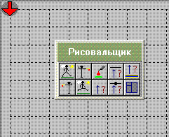 При загрузке исполнитель Рисовальщик находится в верхнем левом угле и повёрнут на юг (вниз). Но начальное положение исполнителя можно изменить (загрузив из файла соответствующую обстановку или нажав правой кнопкой мыши на исполнителе).