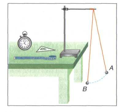 Оборудование: металлический шарик на нитке длиной =1 м, секундомер, штатив со стержнем, треугольник (рис. 1).