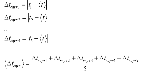 Абсолютная систематическая погрешность Δtсист= Δtпр +Δtотсч определяется суммой предельной абсолютной погрешности прибора (секундомера) Δtпр и абсолютной погрешности отсчета Δtотсч.