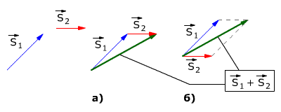На рис 1.2 показаны правила сложения векторов S1 и S2: