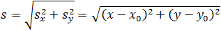 Рассмотрим пример движения тела на плоскости. Начальное положение тела – точка А с координатами х0 и у0, то есть А(х0, у0). Конечное положение тела – точка В с координатами х и у, то есть В(х, у). Найдём модуль перемещения тела.