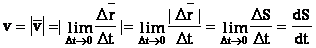 По мере уменьшение ∆t путь ∆S все больше будет приближаться к |∆r|, поэтому модуль мгновенной скорости: