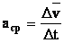При неравномерном движении тела его скорость непрерывно изменяется. Как быстро изменяется скорость тела, показывает величина, которая называется ускорением. Средним ускорением неравномерного движения в интервале от t до t + ∆t называется векторная величина, равная отношению изменения скорости ∆v к интервалу времени ∆t: