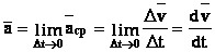 Мгновенным ускорением а в момент времени t будет предел среднего ускорения: