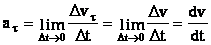 Тангенциальная составляющая ускорения аτ равна первой производной по времени от модуля скорости, определяя тем самым быстроту изменения скорости по модулю:
