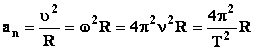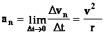 В каждой точке траектории вектор an направлен по радиусу к центру окружности, а его модуль равен: