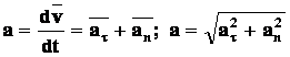 Полное ускорение есть геометрическая сумма тангенциальной и нормальной составляющих: