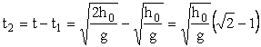 Время спуска t2 можно вычислить, рассмотрев падение тела с известной высоты Н без начальной вертикальной скорости: