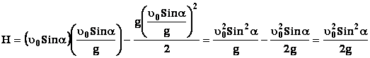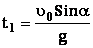Отсюда, получаем: 0 = υ0Sinα - g·t1 или
