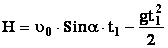 Вертикальная скорость тела в наивысшей точке траектории (при t = t1) равна очевидно нулю. С другой стороны, эта скорость может быть выражена при помощи формулы зависимости скорости равнозамедленного движения от времени.