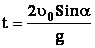 Начнем рассматривать вертикальную составляющую движения. Время полета t = t1 + t2, где t1 - время подъема (тело движется по вертикали равнозамедленно), t2 - время спуска (тело движется по вертикали равноускоренно).