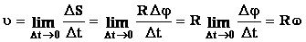 Линейная υ и угловая ω скорости связаны соотношением: υ = ω·R. Это видно из следующего вывода: