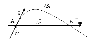 Движение, при котором за равные промежутки времени тело совершает неравные перемещения называют неравномерным или переменным. Средней скоростью vср называется величина, равная отношению перемещения тела ∆r за некоторый промежуток времени ∆t к этому промежутку: