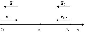 Решение: Пусть ось ОХ совпадает с направлением движения первого велосипедиста, а начало координат с точкой O, в которой он находился в момент времени t = 0 (рисунок 1.4). Тогда уравнения движения велосипедиста таковы :