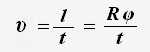 где l - длина дуги, R - радиус описанной окружности, φ - угол поворота радиус-вектора, t- время движения.
