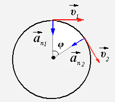 При равномерном движении по окружности линейная скорость изменяется по направлению, поэтому движение по окружности - это движение с ускорением. При равномерном движении по окружности ускорение направлено к центру окружности и называется нормальным или центростремительным ускорением. Модуль ускорения не меняется: