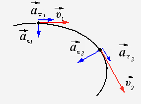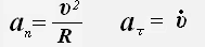 где первое слагаемое - нормальная составляющая ускорения, второе слагаемое - тангенсальная составляющая ускорения.