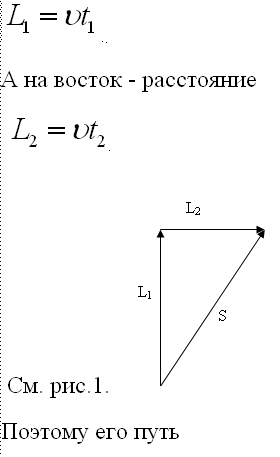 Пусть скорость самолета равна (по модулю) . Тогда, двигаясь на север, самолет пролетел расстояние
