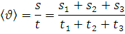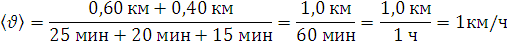 Среднюю скорость находят путём деления всего пути на весь промежуток времен, за который этот путь пройден.