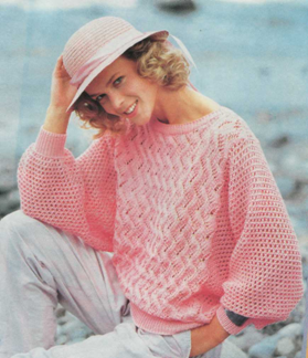 Материал: шерстяной или хлопчатобумажной пряжи розового цвета 700 (800)г, круговые спицы №2,5.