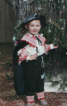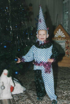 Новогодний утренник. Костюм кота. Данный костюм в последующие годы смог преобразиться в костюмы: мушкетёра, принца, пирата.